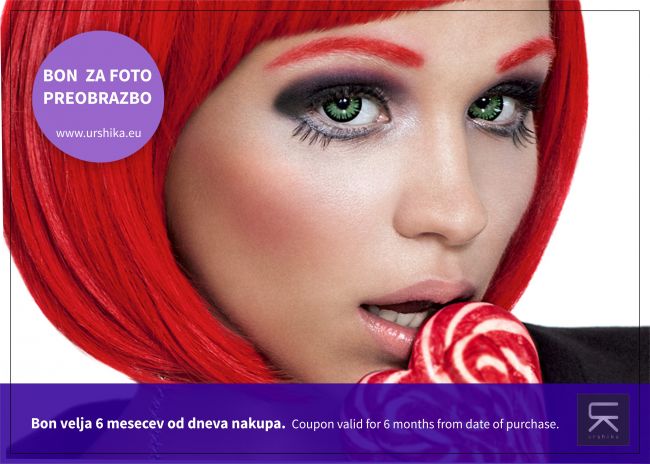 Foto preobrazba vključuje masko, frizuro, stiliranje in obdelavo dveh končnih fotografij.